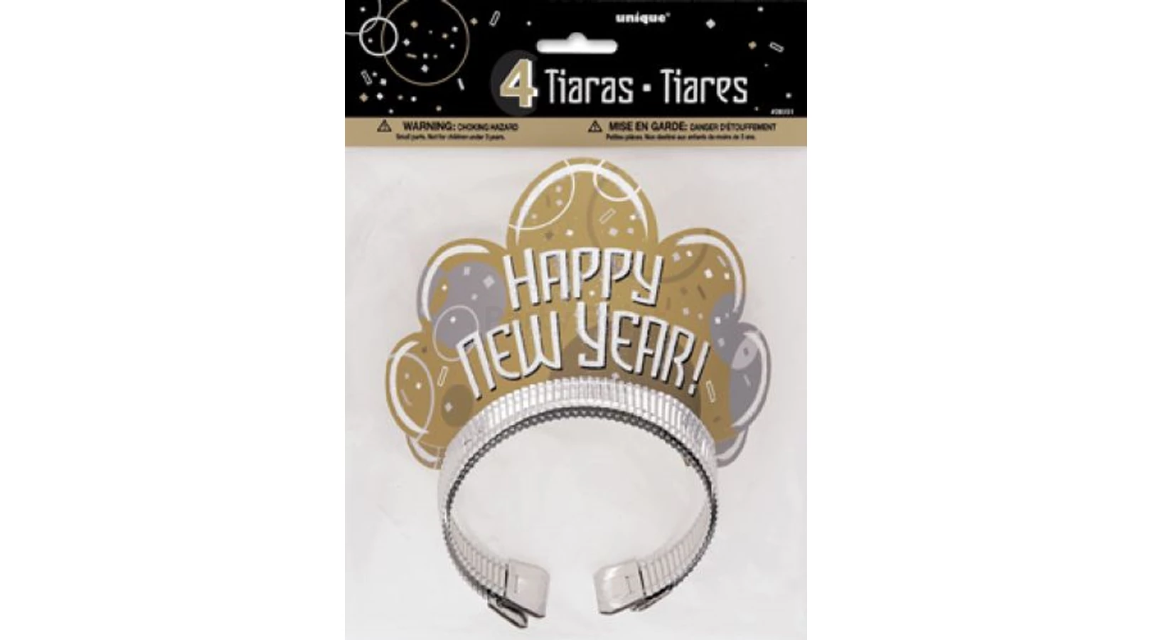 Szilveszter éjjel viselj magadon egy ilyen újév köszöntő tiarát és adj a barátnőidnek is. Vidám estét kívánunk! A csomag 4 db Happy New Year feliratos, díszes tiarát tartalmaz.