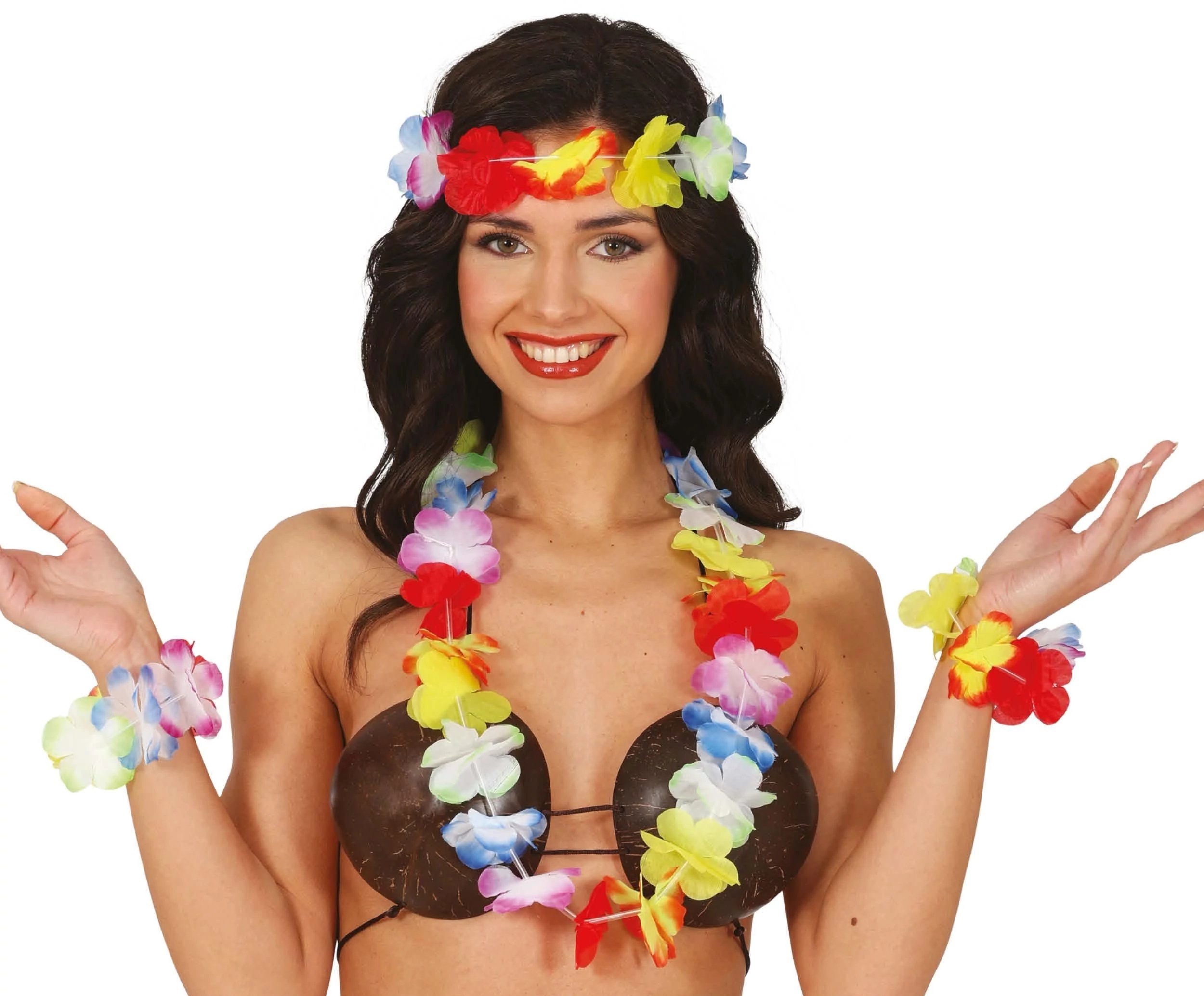 Hawaii szett színes (fejpánt, nyakfüzér, karkötő)