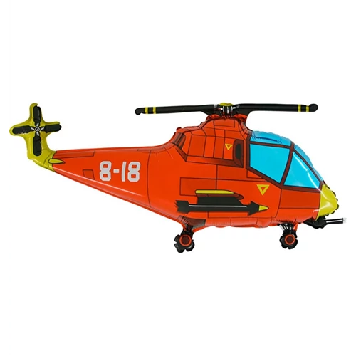 Piros helikopter fólia lufi. Kisfiúknak nagyszerű meglepetés lehet születésnapra, névnapra vagy gyerek napra ez a menő, helikopter formájú fólia léggömb. Szülinapi partyn, díszítésként is jól mutat; kiegészíthető alkalomhoz illő gumi léggömbökkel és feliratokkal. Mérete kb. 70 cm. Levegővel és héliummal is tölthető; önzáró szeleppel rendelkezik.