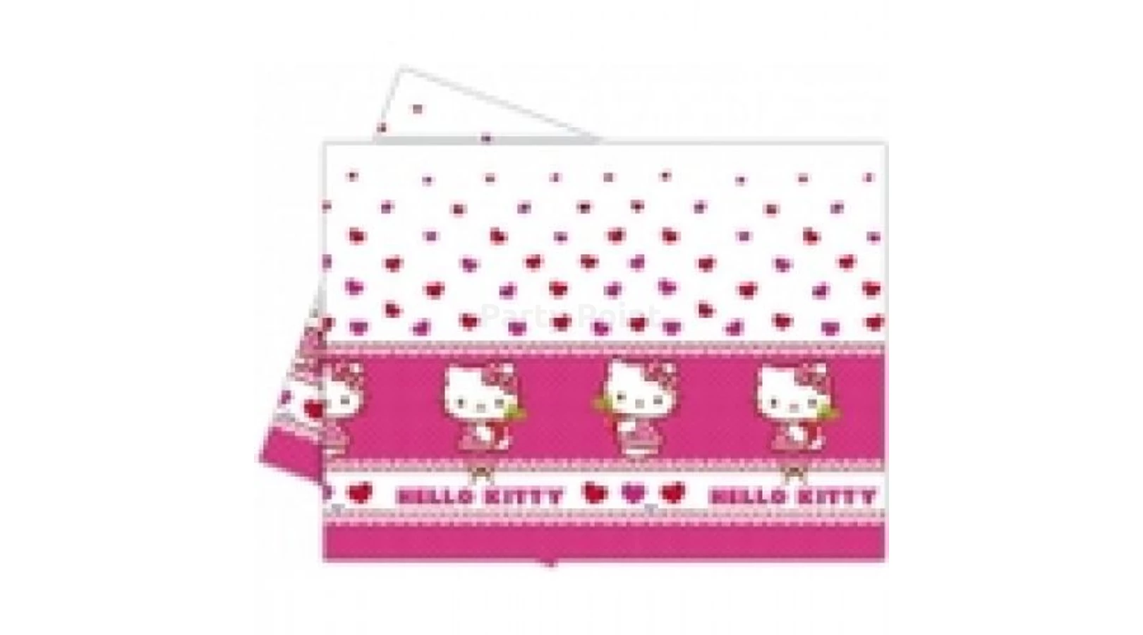 Hello Kitty Hearts műanyag asztalterítő 120 x 180 cm. Feldobnád a születésnapi party dekorációt? Válaszd ezt a vidám, Hello Kitty cicás asztalterítőt. A teljes összhang érdekében, egészítsd ki a terítéket, hozzá illő parti tányérral, pohárral és szalvétával is.