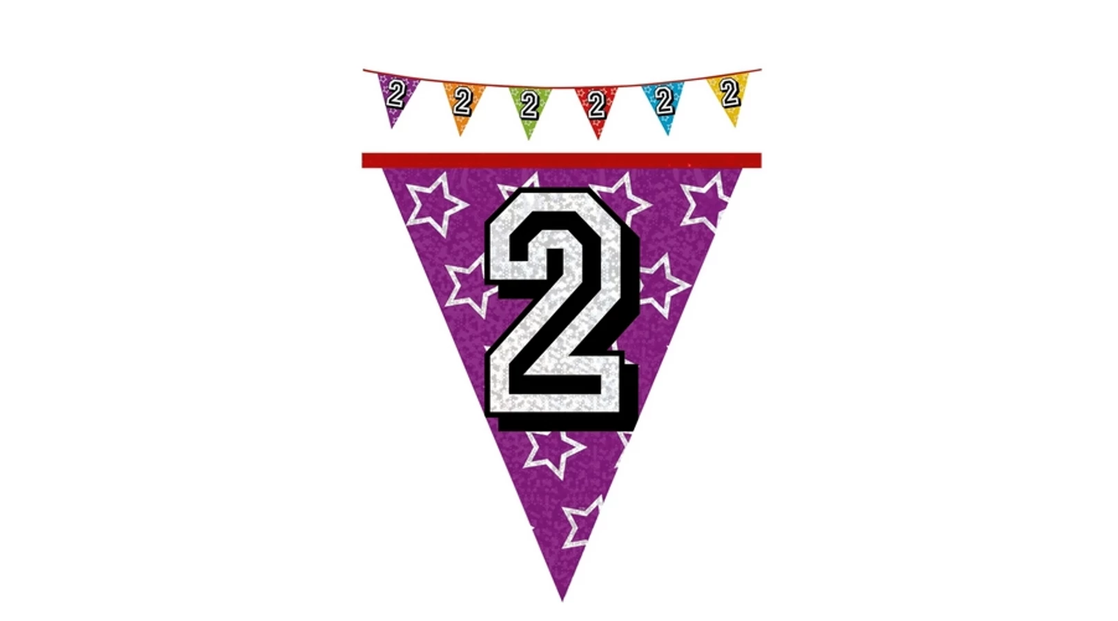 Hologramos zászló 2. születésnapra, 8 m 16 zászlóval. Egyetlen igazán nagyszerű születésnapi buliból se maradhat ki a vidám, ünnepi dekoráció. Válaszd ezt a színes, hologramos, számozott zászlót a party helyszín feldíszítéséhez! Kiegészíthető hozzá illő gumilufikkal, fólia léggömbökkel és szülinapi feliratokkal.