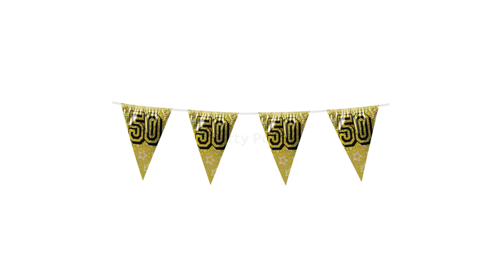 Hologramos zászló 50. születésnapra,évfordulóra, arany,8 m 16 zászlóval. Egyetlen igazán nagyszerű születésnapi vagy évfordulós buliból se maradhat ki a megfelelő ünnepi dekoráció. Válaszd ezt az arany színű, hologramos, számozott zászlót a party helyszín feldíszítéséhez! Kiegészíthető hozzá illő gumilufikkal, fólia léggömbökkel és feliratokkal.
