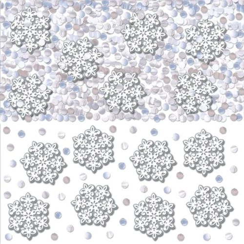 Hópehely formájú konfetti 3 x 31 g. Varázsolj ünnepi hangulatot és egészítsd ki a karácsonyi dekorációt ezzel a hópehely formájú konfettivel. Adhatsz mellé csillag vagy fenyőfa formájú konfettit is.