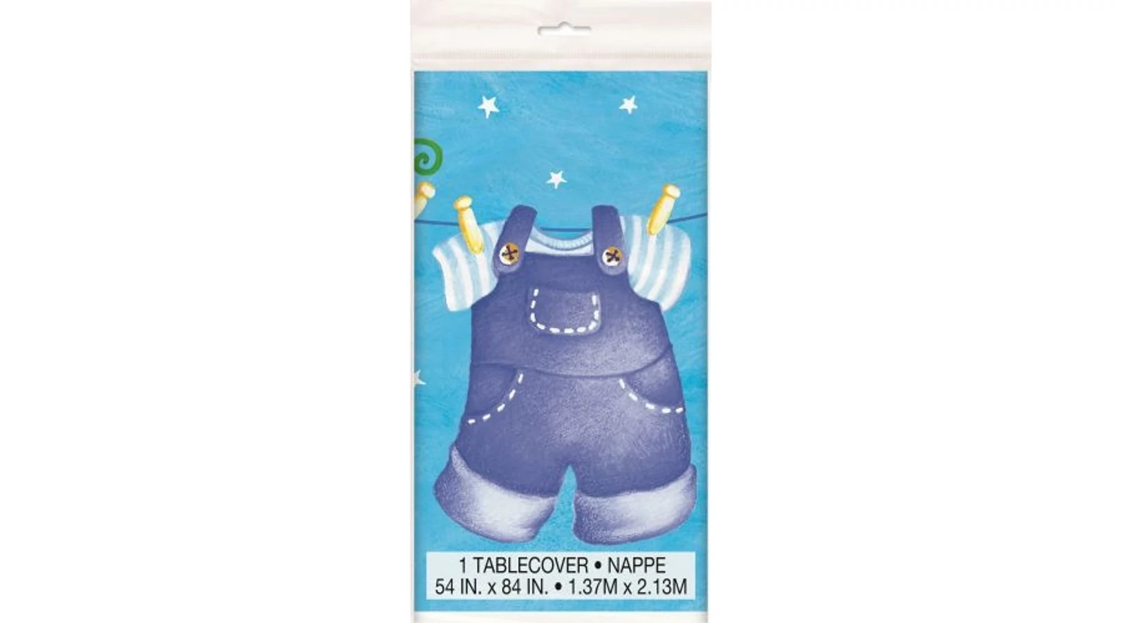 It's a boy kék műanyag asztalterítő. Babaváró partyra elengedhetetlen dekoráció ez a kedves, kék "It's a boy" feliratú asztalterítő. A teljes összhang érdekében egészítsd ki a hozzá illő tányérral, pohárral és szalvétával is. A terítő mérete: 137 x 213 cm.