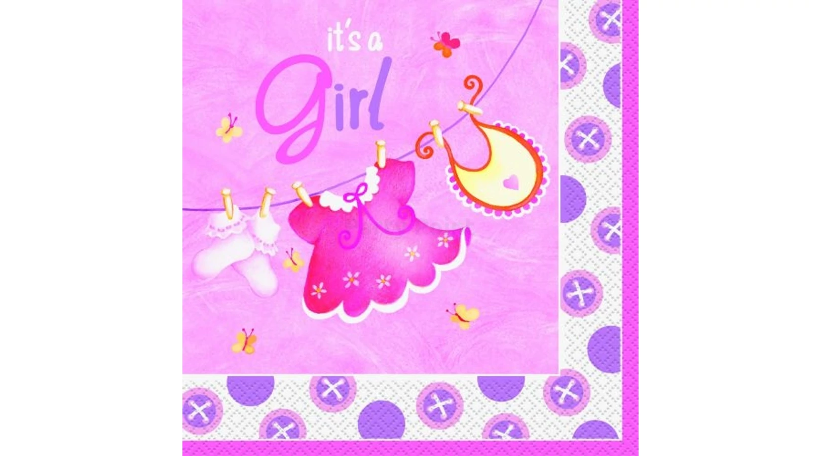 Ünnepeljétek meg az új jövevény születését és dobjátok fel az ünnepi asztal terítékét ezzel a bájos rózsaszín szalvétával, melyet kiegészíthetsz a hozzá illő tányérral, pohárral, asztalterítővel. Egy csomag tartalma: 16 db szalvéta.