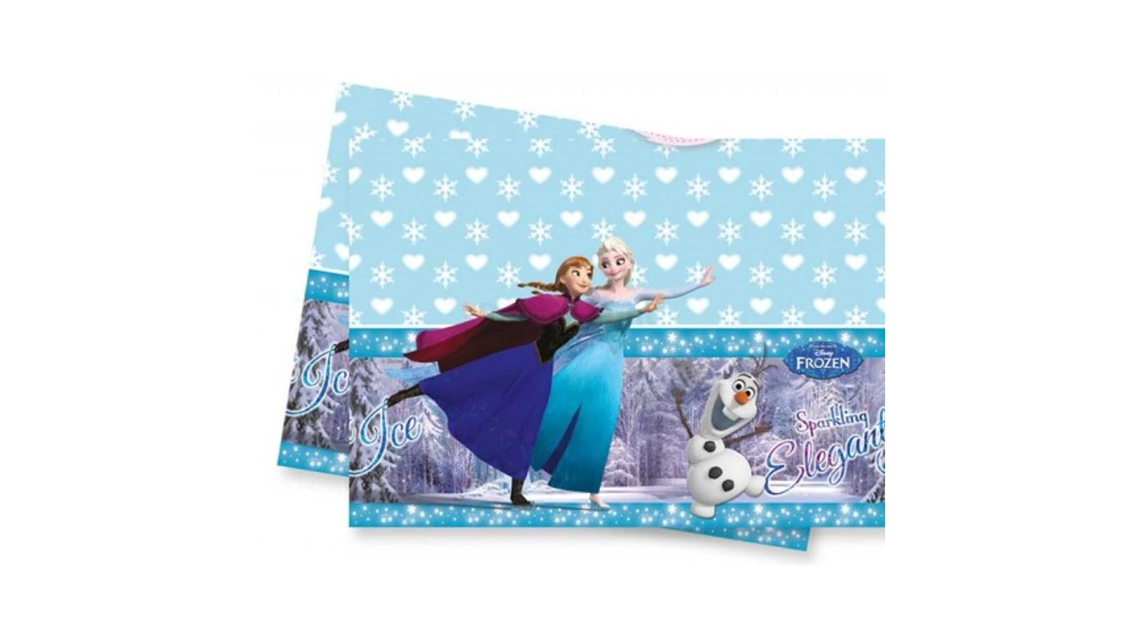 Rendezz egy Jégvarázsos szülinapi partit a kislányodnak és terítsd meg az ünnepi asztalt ezzel a Jégvarázs Frost asztalterítővel és a hozzá illő tányér, pohár és szalvéta együttesével. Az asztalterítő 120 x 180 cm-es