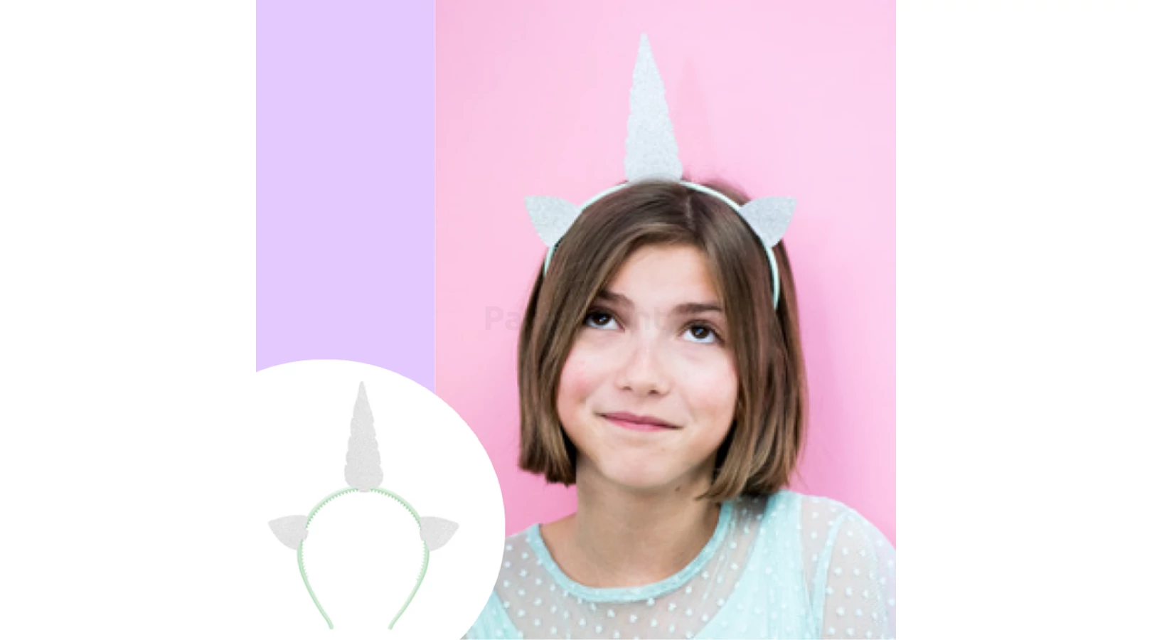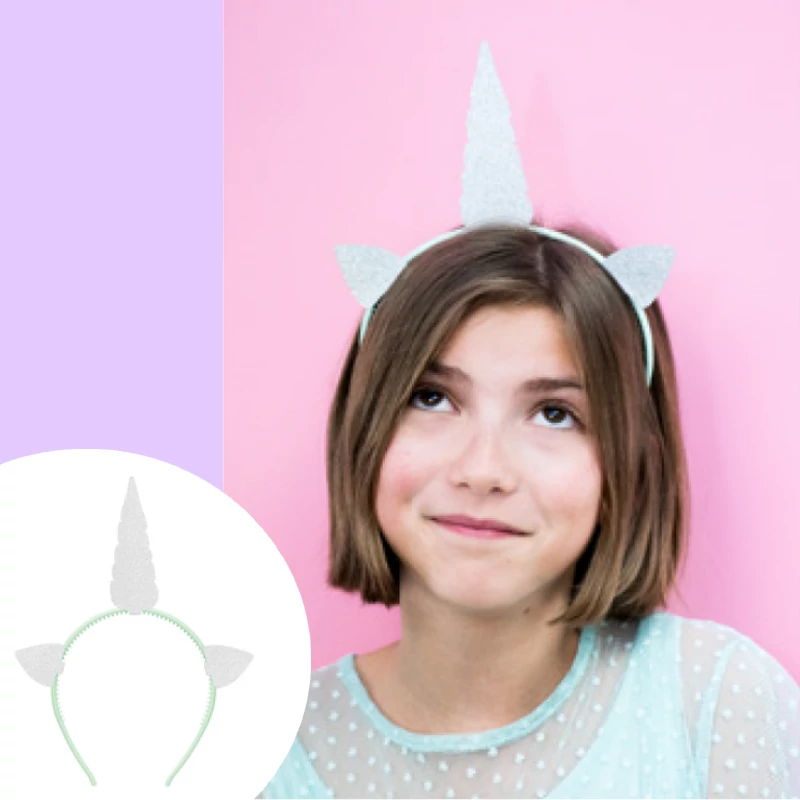 Ezüst színű unikornisos hajpánt. Méret: kb. 17 x 23cm.