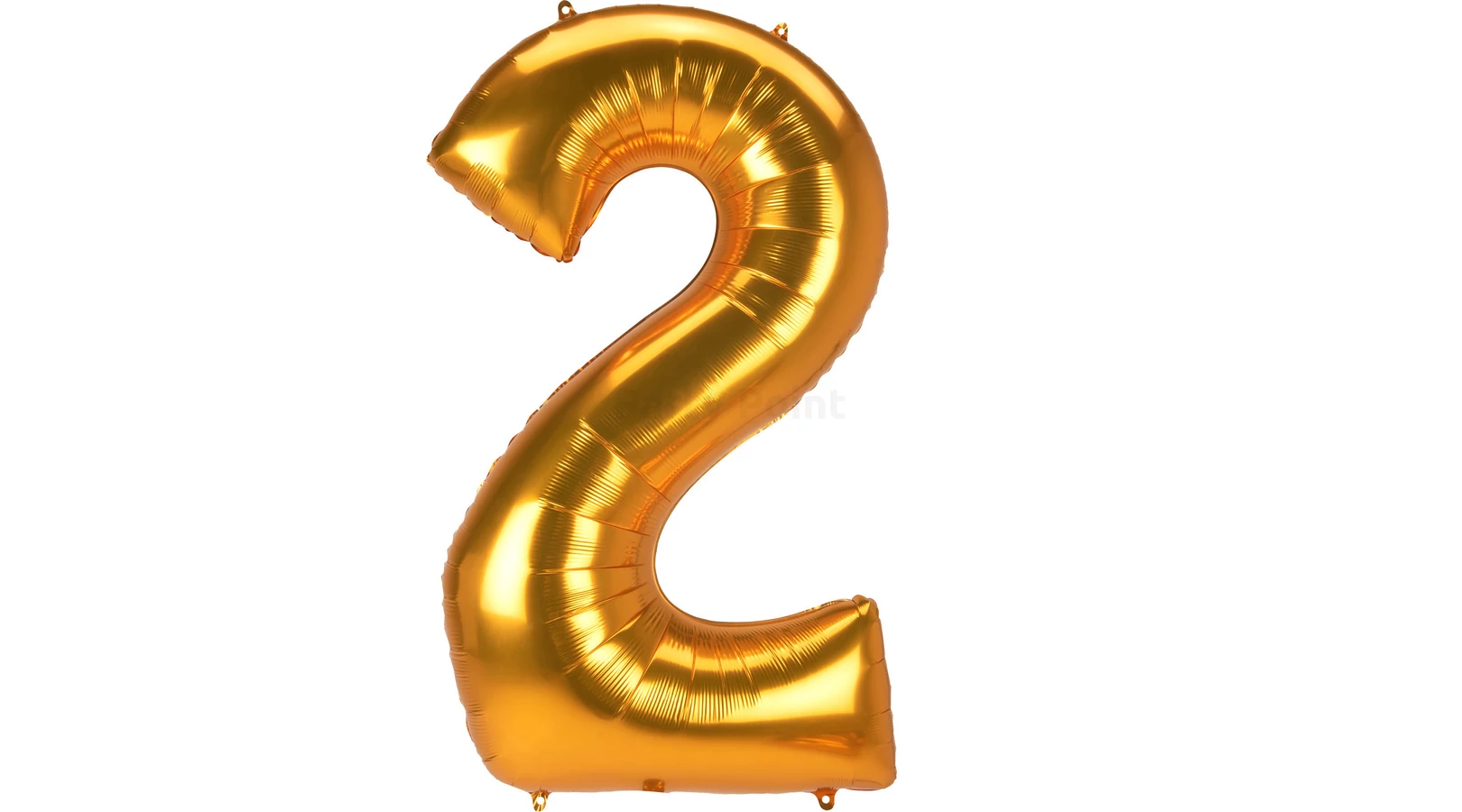 JumboShape - arany 2-es szám fólia lufi, 78 cm x 134 cm