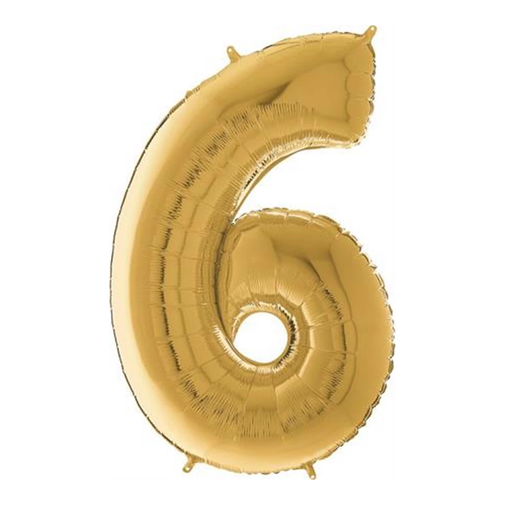 65 cm-es arany színű 6-os fólia lufi.