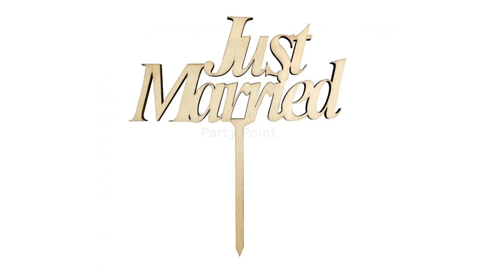 Just Married tortadekoráció fából - 13 cm x 14 cm