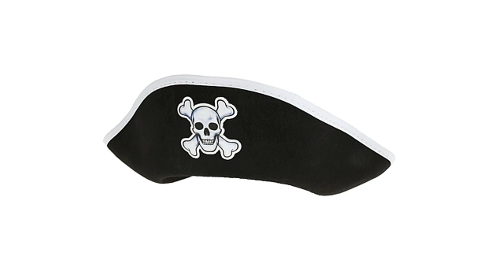 Fekete kalóz kalap gyerekeknek, fehér koponya mintával.