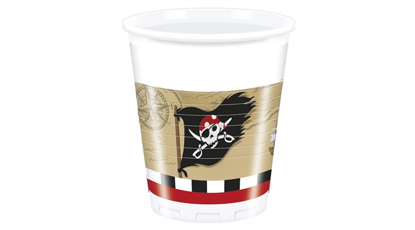 Indulhat a fergeteges kalózos parti! Ebből a kalózos pohárból még finomabb lesz a szülinapi torta mellé az üdítő. A poharat egészítsd ki a hozzá illő tányérral és szalvétával is. Egy csomag tartalma: 8 db, 200 ml-es műanyag pohár.