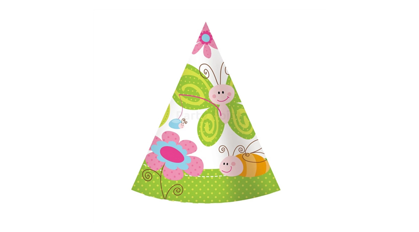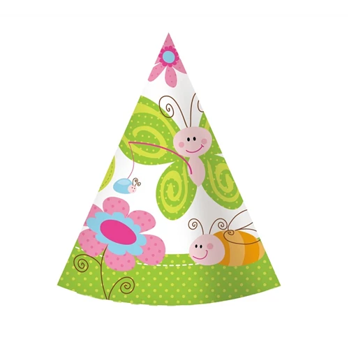 Papírcsákó vidám méhecskés, pillangós, katicás mintával, gyermekeknek. A csomag 6 db csákót tartalmaz.