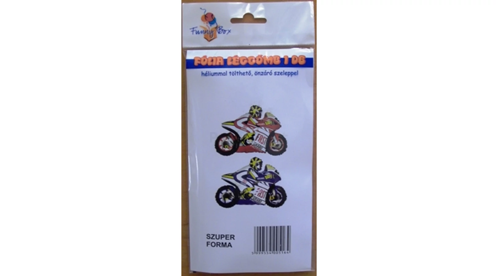 Kék motor fólia lufi. Kisfiúknak nagyszerű meglepetés lehet születésnapra, névnapra vagy gyerek napra ez a menő, motoros fólia léggömb. Szülinapi partyn, díszítésként is jól mutat; kiegészíthető alkalomhoz illő gumi léggömbökkel és feliratokkal. Mérete kb. 70 cm. Levegővel és héliummal is tölthető; önzáró szeleppel rendelkezik.