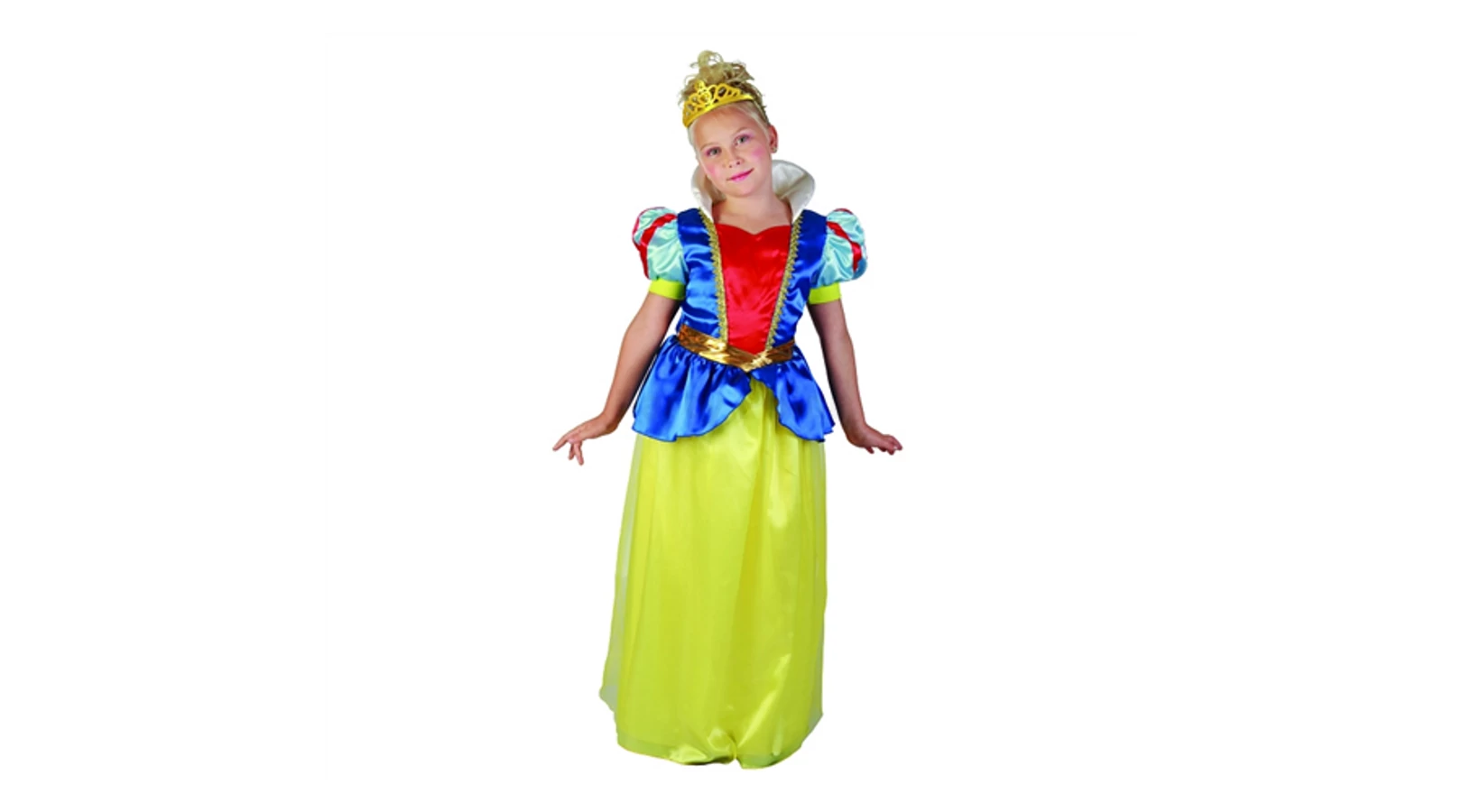 Akár hercegnő, akár hófehérke szeretne lenni, ez a szépen kidolgozott gyerek jelmez szuper választás egy beöltözős bulira. A szett tartalma: sárga-kék-piros ruha, koronás fejpánt. Mérete: 130 cm