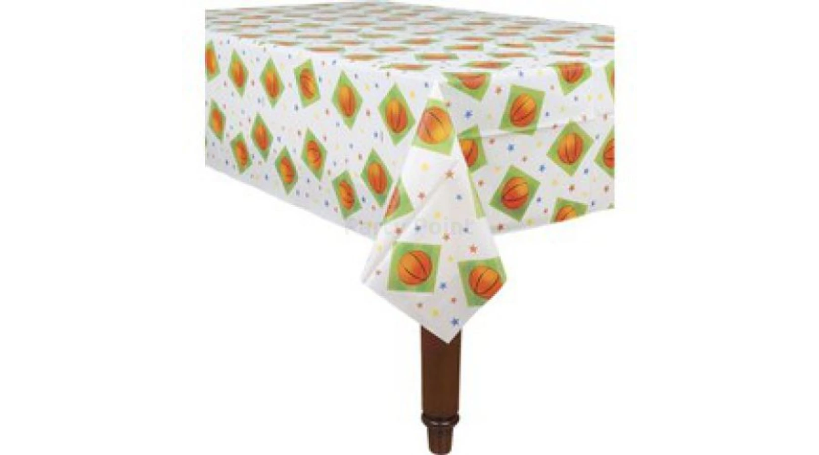 Kosárlabdás asztalterítő, amely kiegészíthető a hozzá illő pohárral, szalvétával, tányérral és egyéb kosárlabdás dekorációkkal. Egy csomag tartalma: 1 db műanyag asztalterítő.