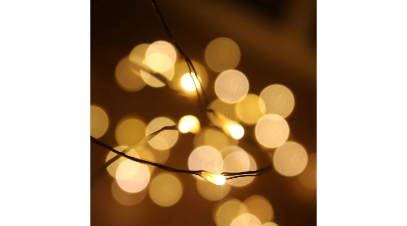 Meleg fehér mikroLED fényfüzér beltéri használatra. Hossza: kb. 10 méter.