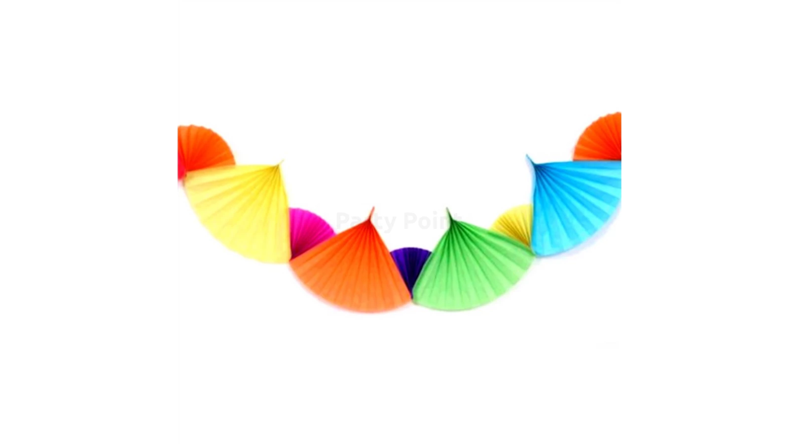 Legyen az farsangi, születésnapi, vagy akár szilveszteri party, ez a színes legyező formájú girland feldobja a buli helyszín dekorációját. Mérete: 200 x 21 cm