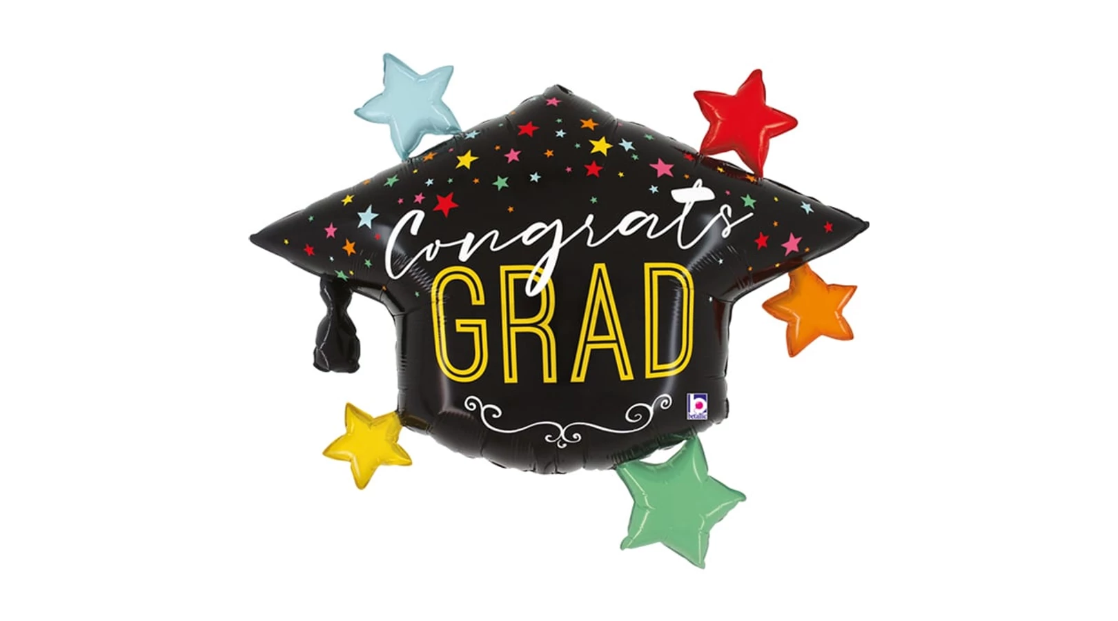 102 cm-es Ballagási kalap színes csillagokkal fólia lufi