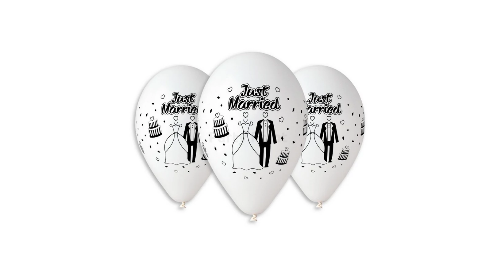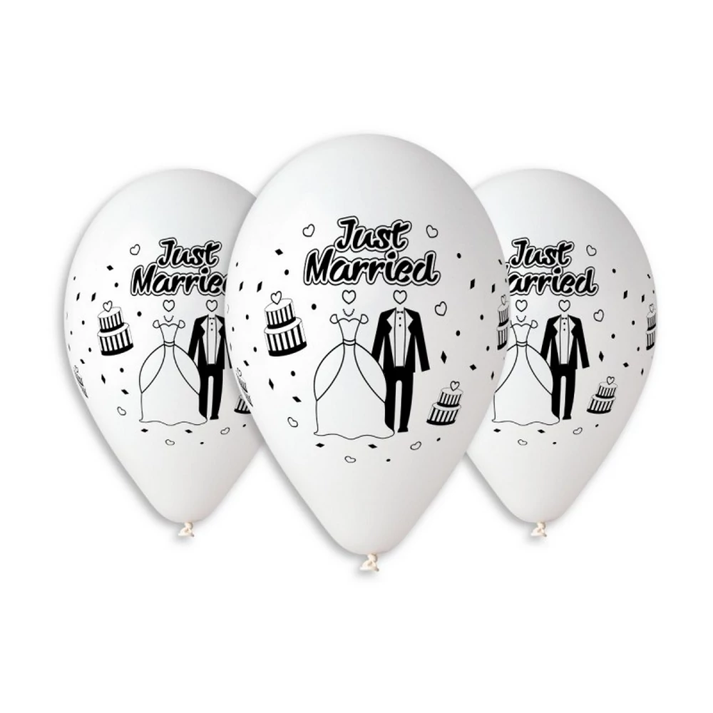 30 cm-es fehér Just Married printelt lufi 10 db/cs. Tedd hangulatossá az esküvői dekorációt ezzel az alkalomhoz illő, fehér, printelt gumi lufival. Válassz mellé más egyszínű vagy printelt lufikat kiegészítésként! Héliummal és levegővel is tölthető.