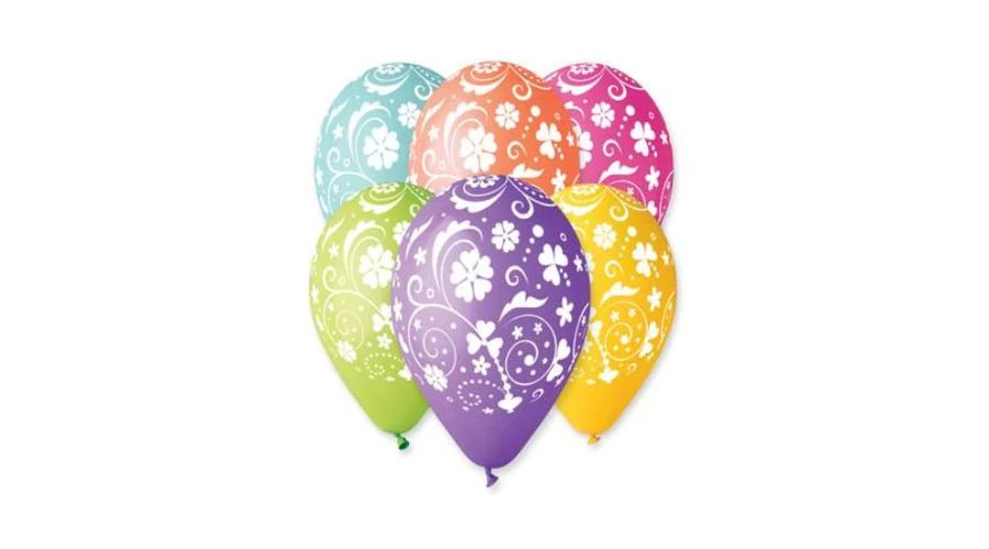 30 cm-es virágos-indás printelt gumi léggömb - 100 db / csomag