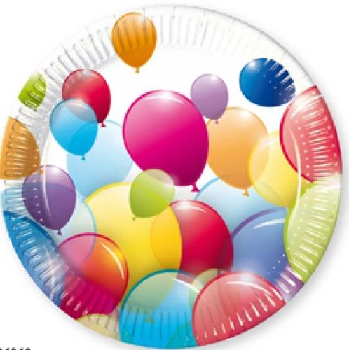 Dobd fel az ünnepi asztal terítékét ezzel a vidám lufis tányérral, melyet kiegészíthetsz a hozzá illő terítő, pohár és szalvéta együttesével. Egy csomag tartalma: 10 db, 23 cm átmérőjű tányért.