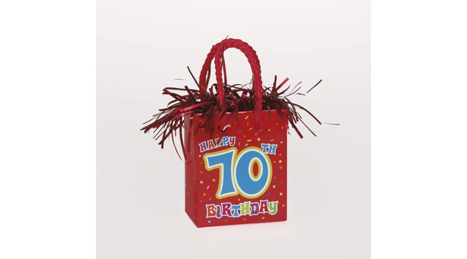 Lufisúly 70. születésnapra. Születésnapi dekorációhoz elengedhetetlen kellék ez a vidám, dísztasak formájú, számozott lufisúly ami egyben asztaldíszként is használható. Kiegészíthető egyszínű, vagy printelt születésnapi gumi vagy fólia léggömbökkel!