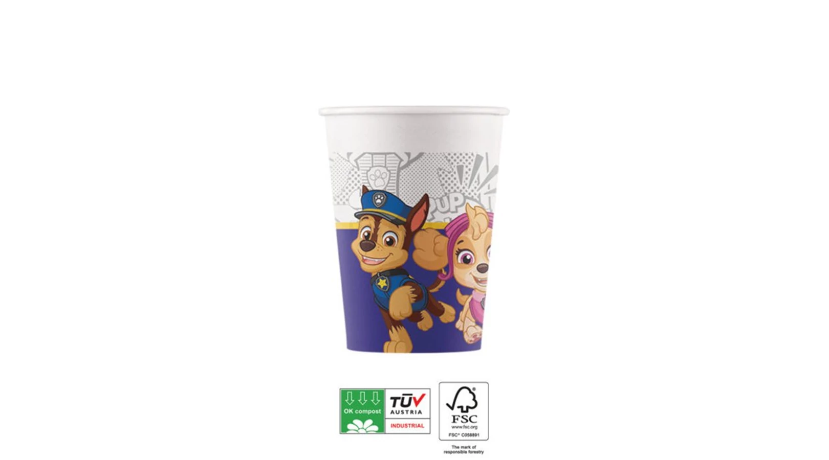 Mancs Őrjárat komposztálható papír pohár - 200 ml, 8 db / csomag. Rendezz gyermekednek Mancs Őrjárat témájú születésnapi partyt vagy házibulit ezzel a komposztálható papírpohárral. Válassz mellé komposztálható szalvétát és papírtányért is. A csomag tartalma: 8 db 200 ml-es komposztálható papírpohár.