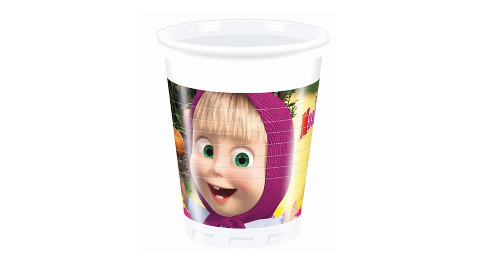 A mindig játékos Mása és a kedves Medve kalandjait eleveníti meg ez a műanyag pohár. Rendezz szülinapi partit a gyerkőcnek és dekoráld az ünnepi asztalt ezzel a pohárral, amely kiegészíthető hozzá illő tányér, szalvéta és terítő együttesével.