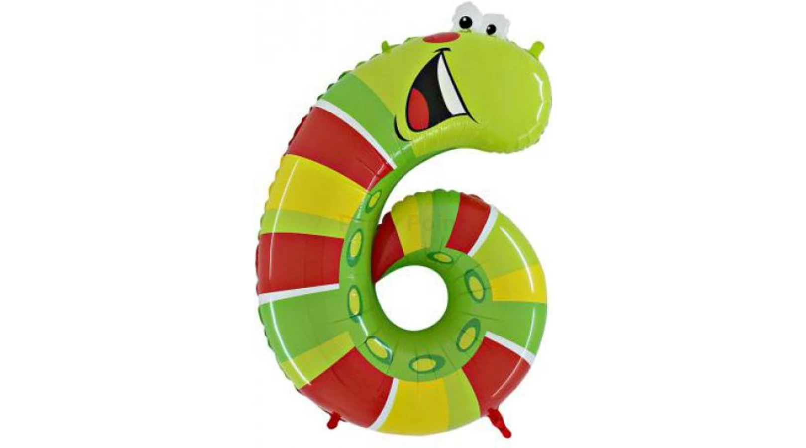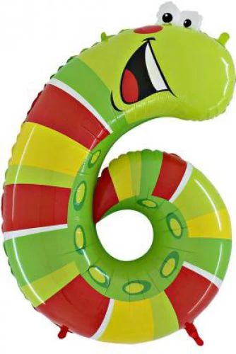 6-os szám alakú kígyós fólia lufi. Dobd fel a hatodik születésnapi party dekorációt ezzel a vidám, állatkás, szám formájú, fólia lufival. Kiegészítésként választhatsz mellé számozott zászlókat vagy alkalomhoz illő feliratot.