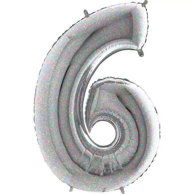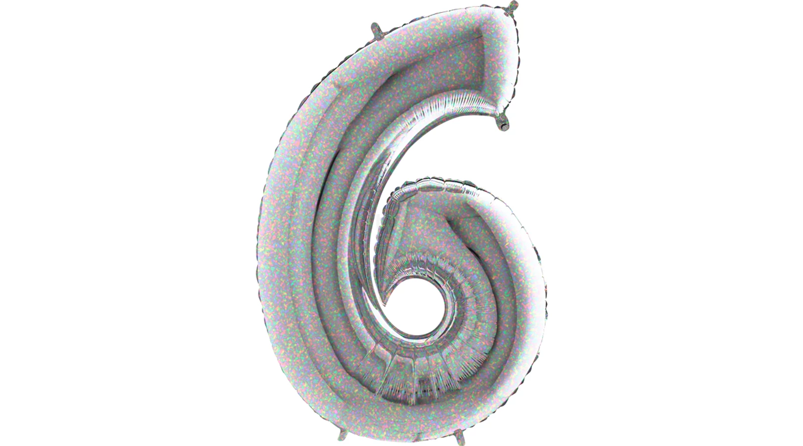 Csomagolt, 100 cm-es hologrammos 6-os szám fólia lufi.