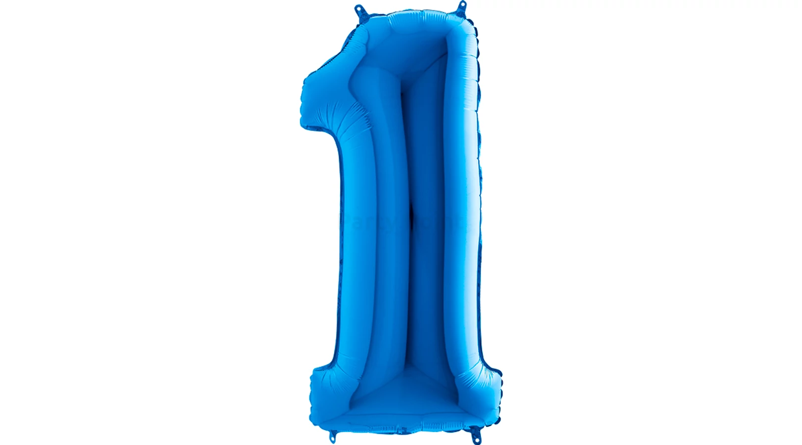 Csomagolt, 100 cm-es kék 1-es szám fólia lufi.