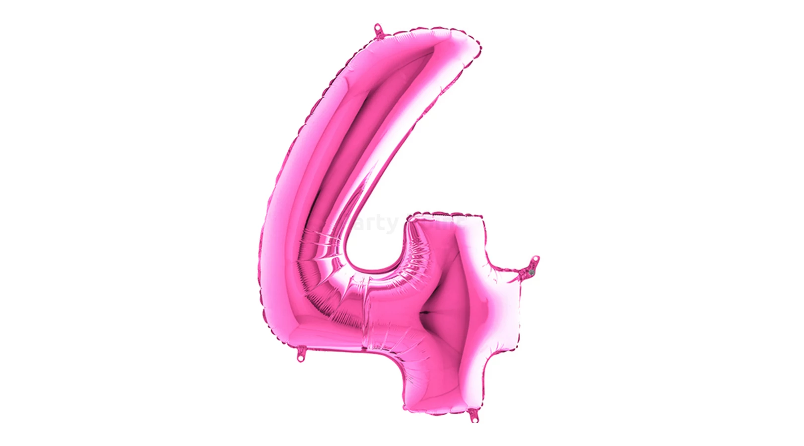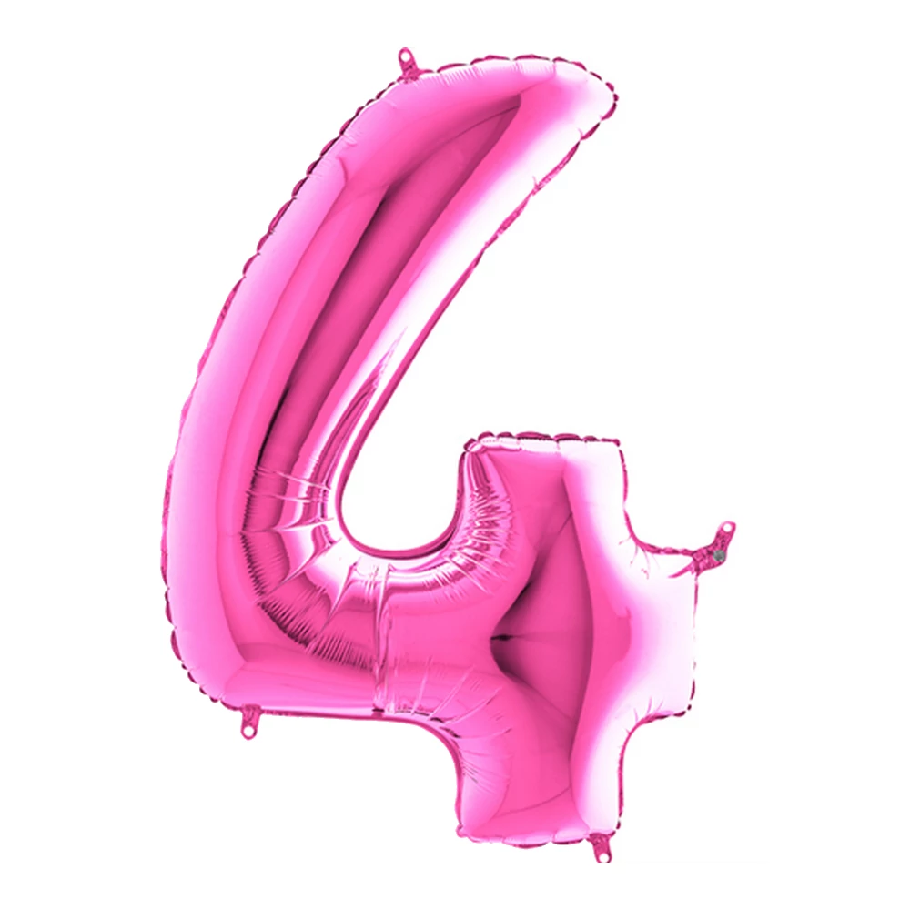 Csomagolt, 100 cm-es pink 4-es szám fólia lufi. A lufi héliummal és levegővel is tölthető, önzáró szeleppel műkődik.