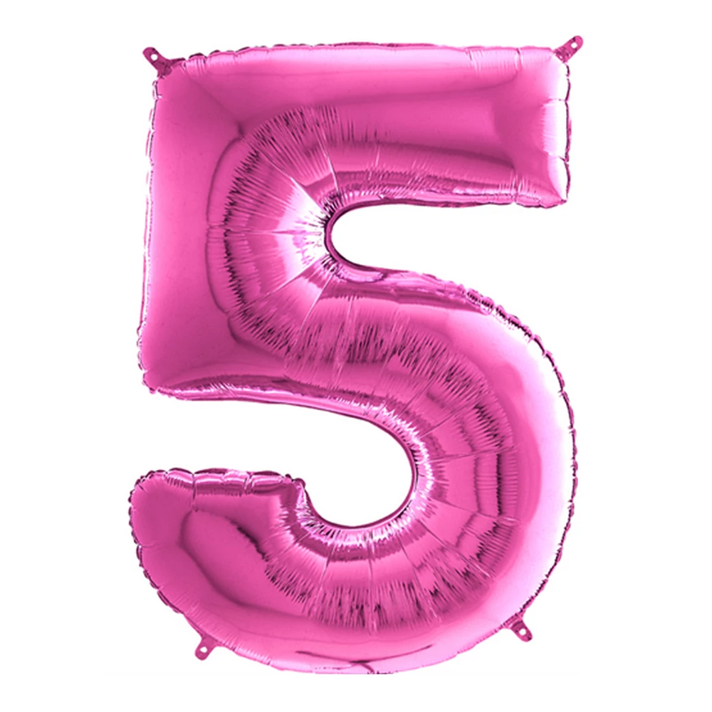 Csomagolt, 100 cm-es pink 5-ös szám fólia lufi. A lufi héliummal és levegővel is tölthető, önzáró szeleppel műkődik.