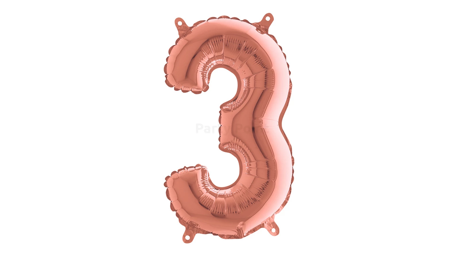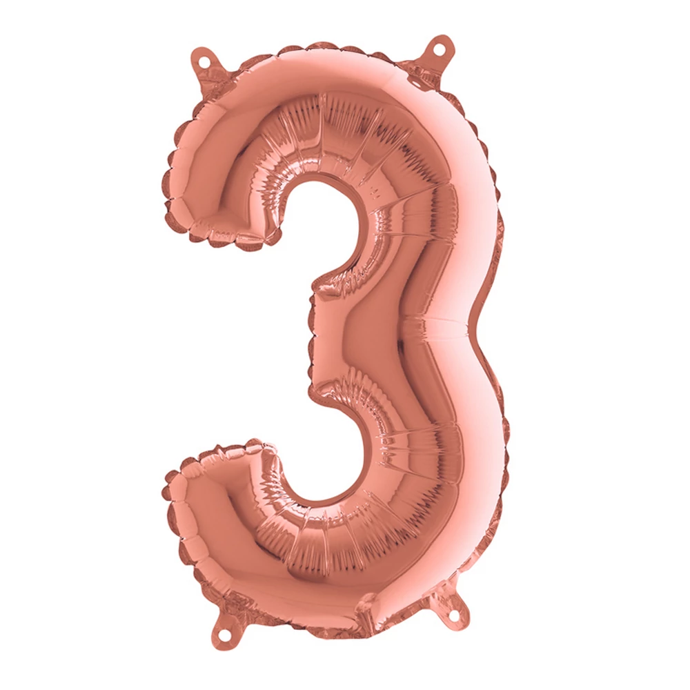 Csomagolt, 100 cm-es rosegold 3-as szám fólia lufii.