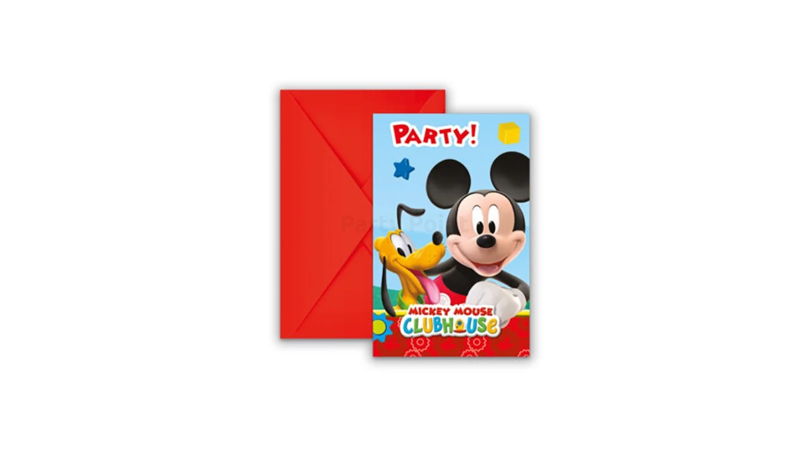 Mickey Playful meghívó - 6 db / csomag. Egy igazán nagyszerű születésnapi partyhoz elengedhetelen a megfelelő meghívó. Válaszd ezt a vidám, Mickey egeres szülinapi meghívót egy remek bulihoz! Dekorációként válassz mellé hozzá illő asztalterítőt, poharakat és tányérokat is.