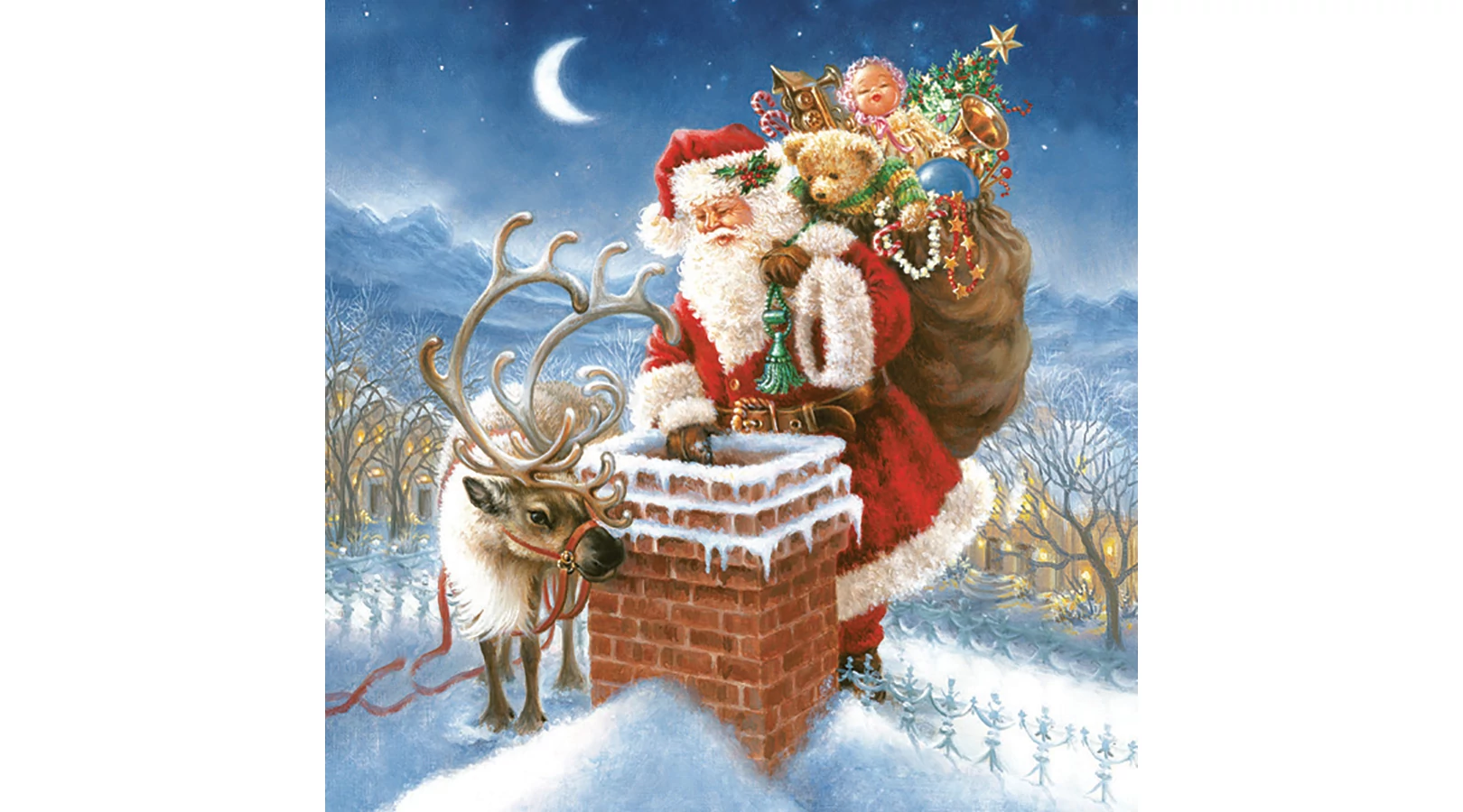 Mikulás a kéményben szalvéta - 33 cm X 33 cm, 20 db / csomag. Varázsold karácsonyi hangulatúvá az ünnepi terítéket, ezzel a szalvétával. A teljes összhang érdekében egészítsd ki a hozzá illő karácsonyi tányérral, pohárral és asztalterítővel is.