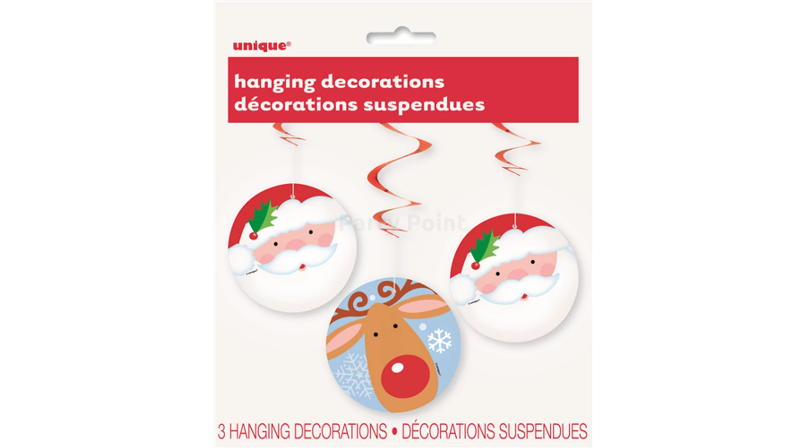 Ha karácsonyi hangulatra vágysz, akkor dekorálj ezzel a Mikulás és rénszarvas mintás, függő dekorációval, amelyet kiegészíthetsz lufikkal, lampionokkal. A csomag 3 db, 75 cm-es dekorációt tartalmaz.