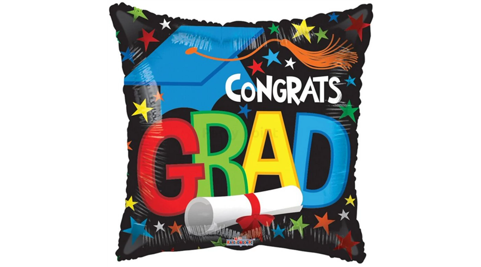 Congrats Grad feliratú kocka formájú mini fólia lufi. Csak levegővel fújható.