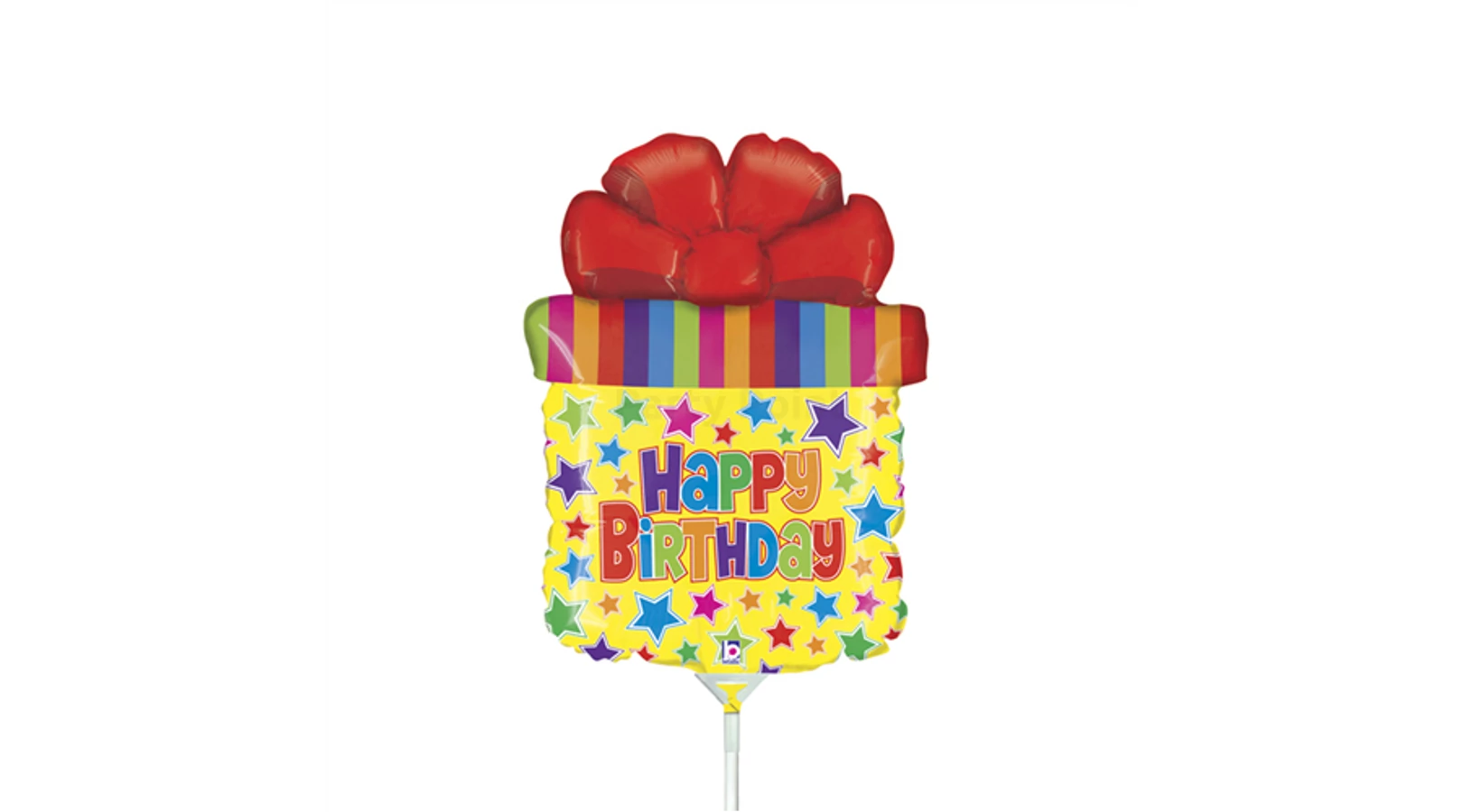 Happy Birthday ajándékdoboz masnival fólia lufi. Levegővel tölthető. Party Point üzletünkben történő személyes átvétel esetén, vagy Party Point weboldalon leadott megrendelés esetén a lufikat levegővel töltve, hegesztve, pálcával szállítjuk. Csomagolatlan termék. Méret: 36 cm.
