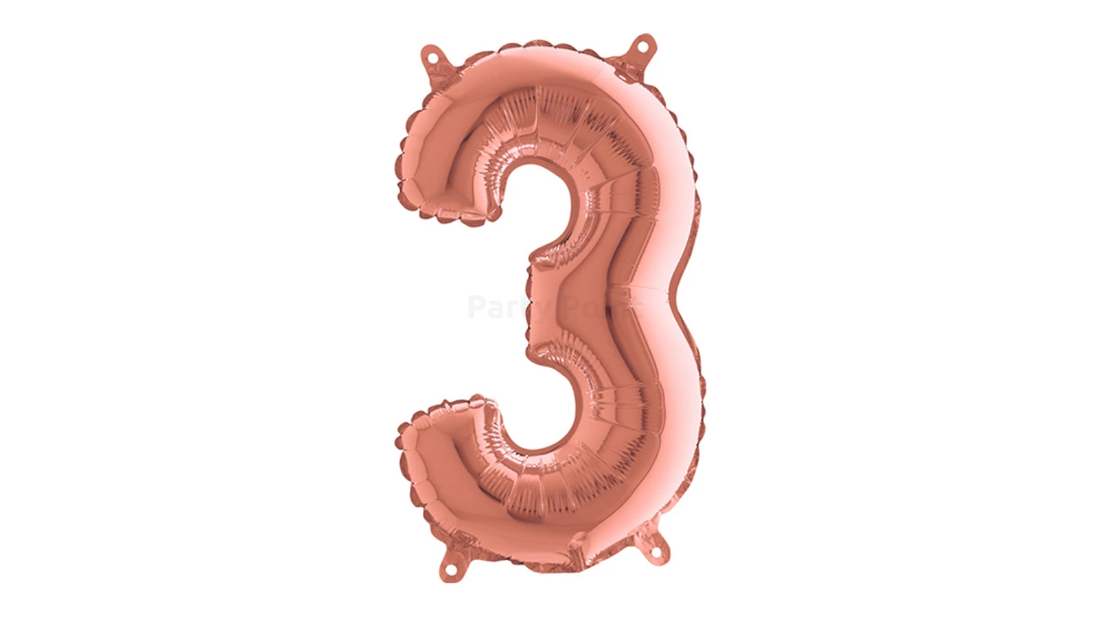 Csomagolt, 36 cm-es rosegold 3-as szám fólia lufii . A lufi levegővel tölthető, önzáró szeleppel műkődik.