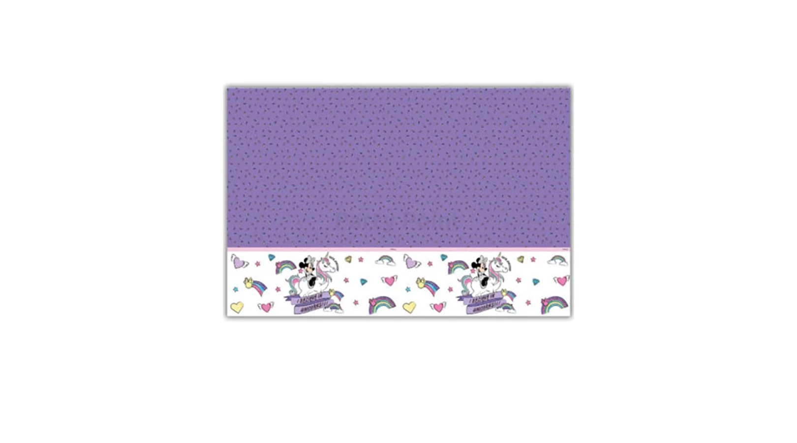 Minnie Unikornis asztalterítő 120 cm x 180 cm. Ezzel a Minnie unikornis mintás terítővel a terített asztal már messziről felkelti gyermeked barátainak érdeklődését. A party után csak töröld le és a következőn ismét használhatod! A tökéletes összhanghoz válassz hozzá Minnie unikorninsos tányért, poharat és szalvétát is! Mérete: 120 cm x 180 cm.