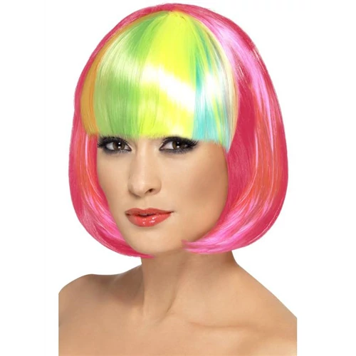 Neon pink rövid egyenes paróka