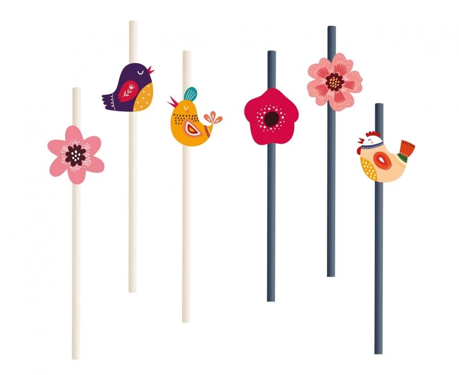 Papírszívószál nyári motívumokkal - 6 db / csomag