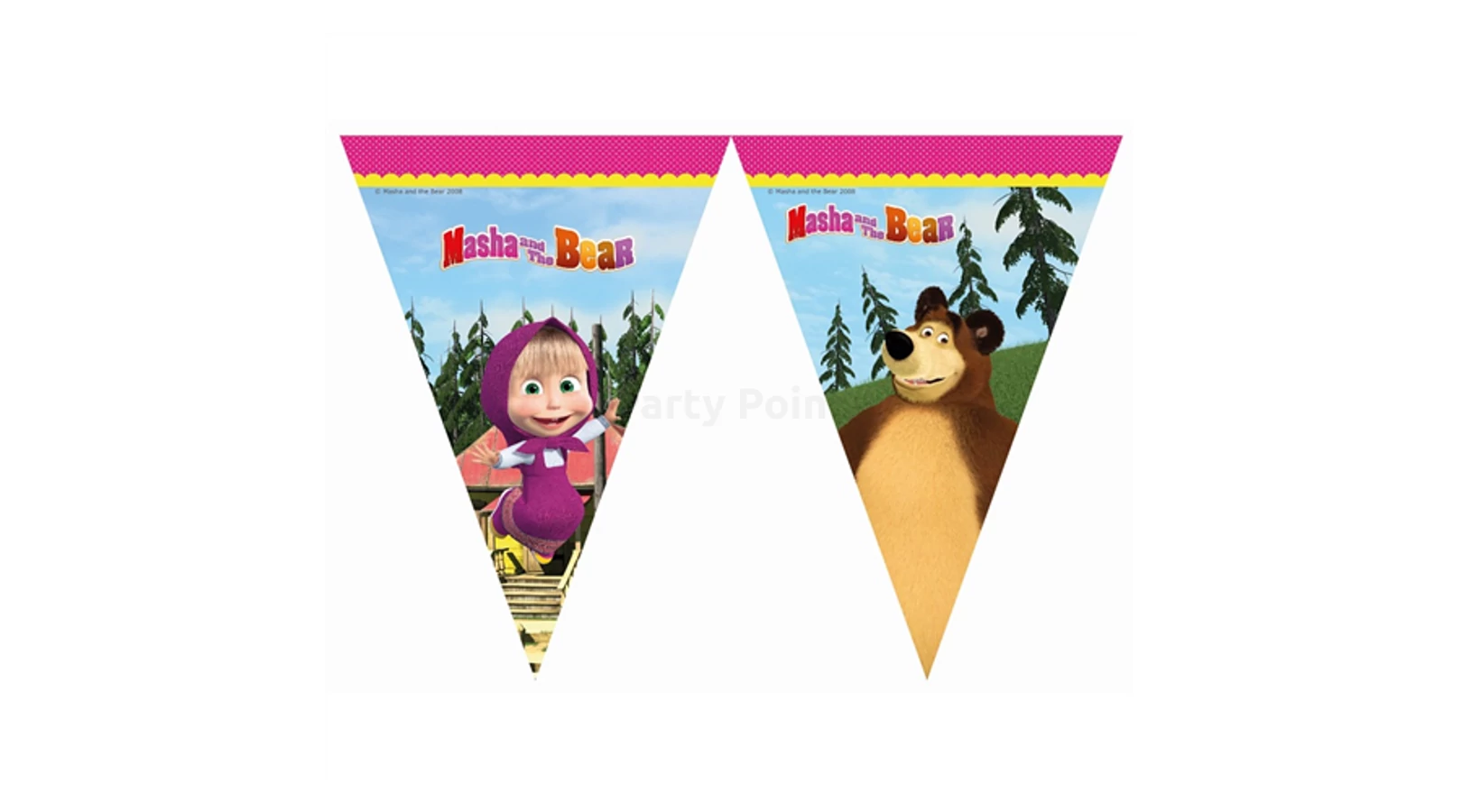 A mindig játékos Mása és a kedves Medve kalandjait eleveníti meg ez a zászlófüzér. Rendezz szülinapi partit a gyerkőcnek és dekoráld parti helyszínét ezzel a zászlófüzérrel.