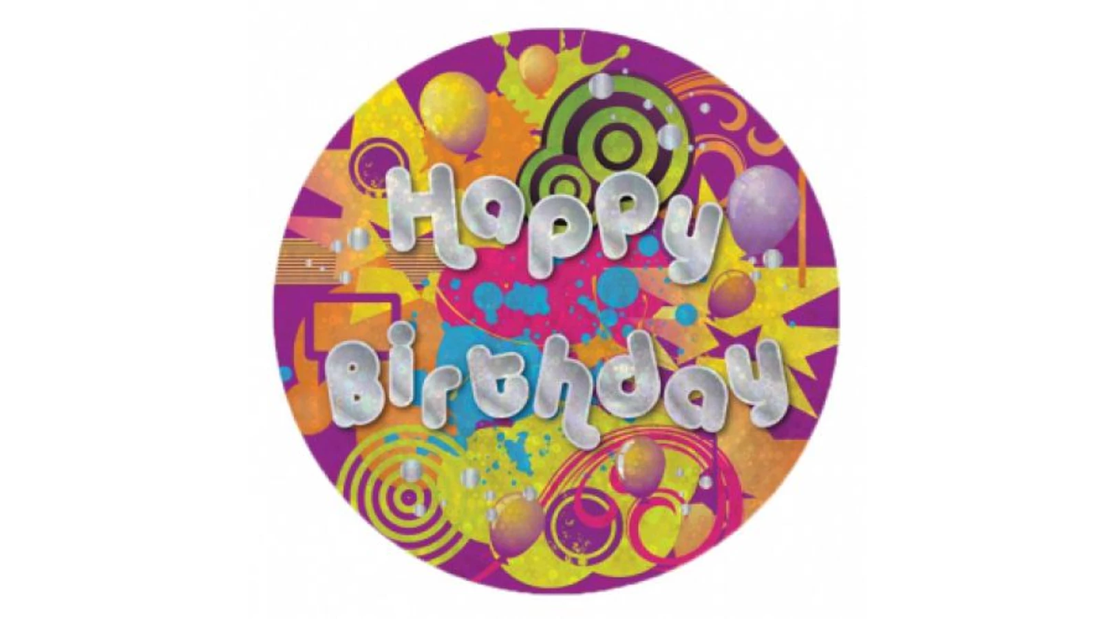 Tűzd ki a ruhádra, ezt a hologramos Happy Birthday feliratos kitűzőt, hogy minden kedves vendéged láthassa Te vagy ma az ünnepelt! Mérete: 55 mm.