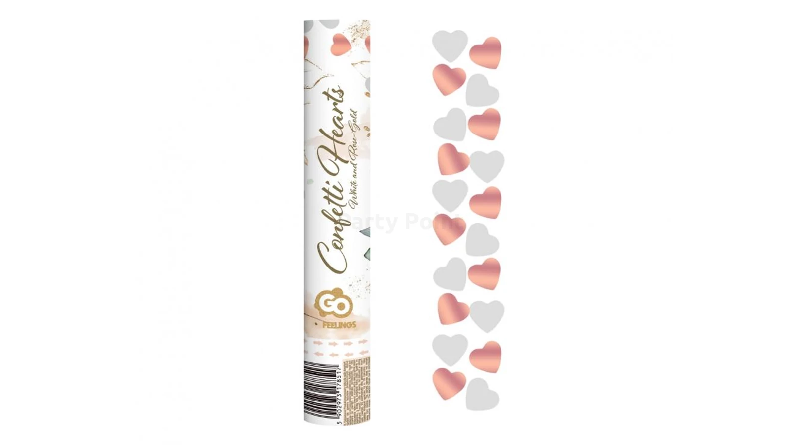 Konfetti ágyú rosegold-fehér szívek - 30 cm