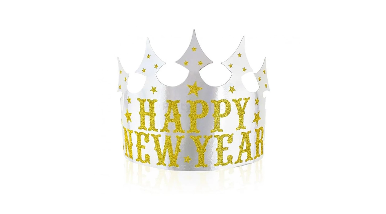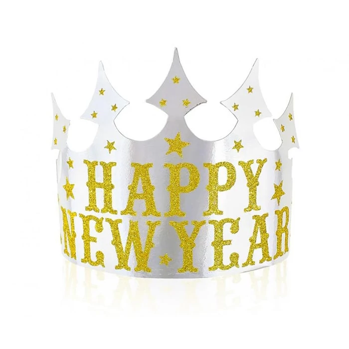 Papír tiara Happy New Year ezüst arany glitterrel - 4 db / csomag