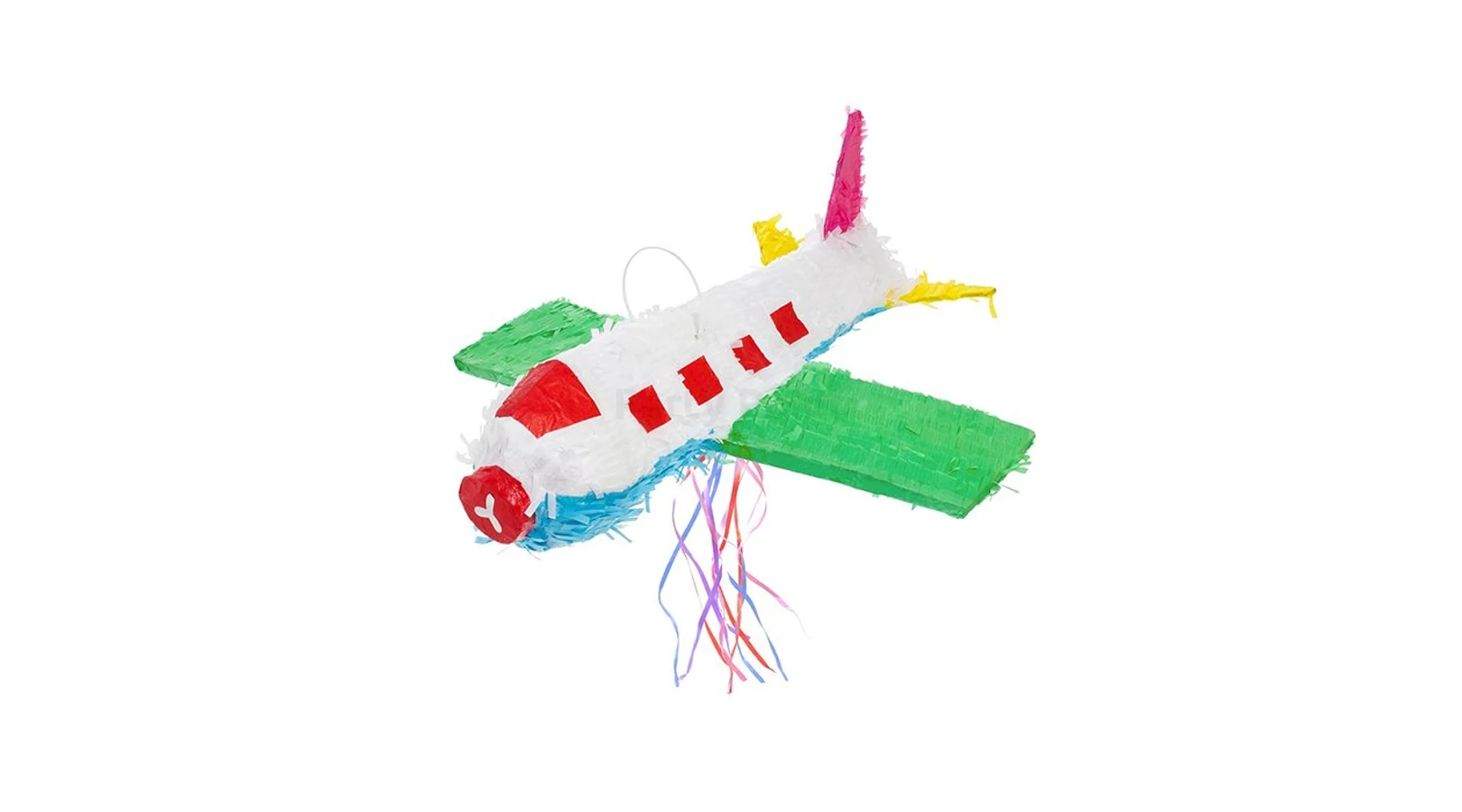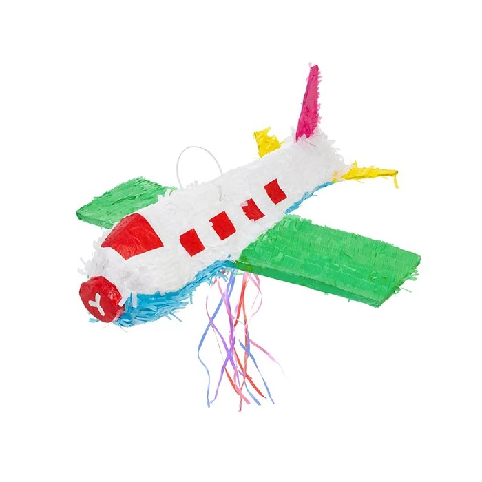 Repülőgép alakú piñata. Dobjátok fel a születésnapi buli vagy kerti party hangulatát ezzel a repülőgép alakú piñátával. Méretei: 46 cm x 44 cm x 11 cm. A tölteléket a termék nem tartalmazza!