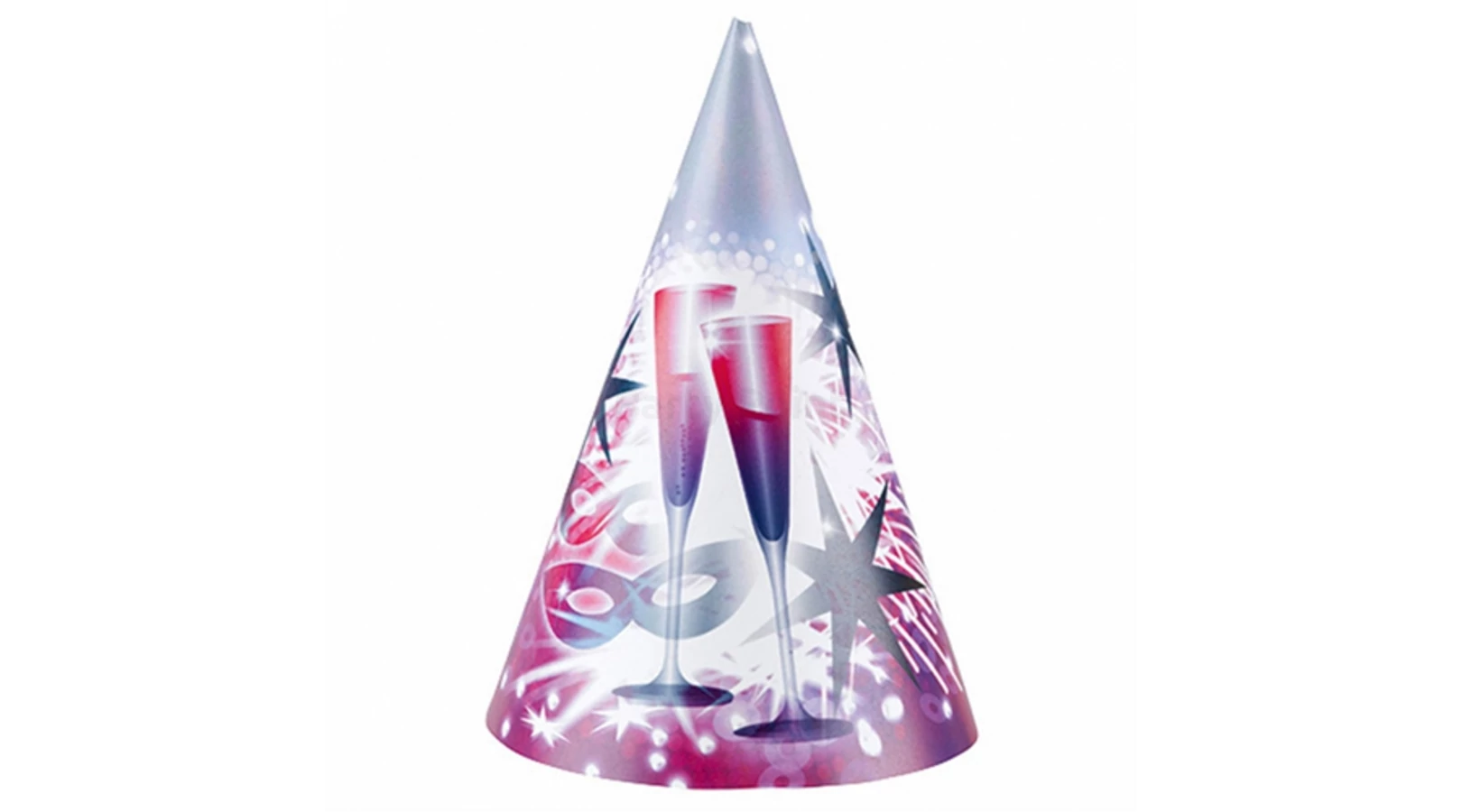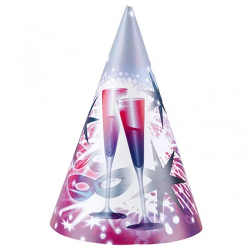 Pezsgőspoharas Happy New Year csákó 6 db/cs. Ünnepeld a Szilvesztert stílusosan ezzel a pezsgőspoharas csákóval, mely 6 db "Happy New Year" csakót tartalmaz. Ezek a csákók tökéletes kiegészítők a pezsgős koccintáshoz, és garantáltan feldobják a buli hangulatát. Mindegyik csákó kényelmes viselet, így könnyedén megkoronázhatod az éjszakát ezzel a szórakoztató és divatos szilveszteri kiegészítővel!